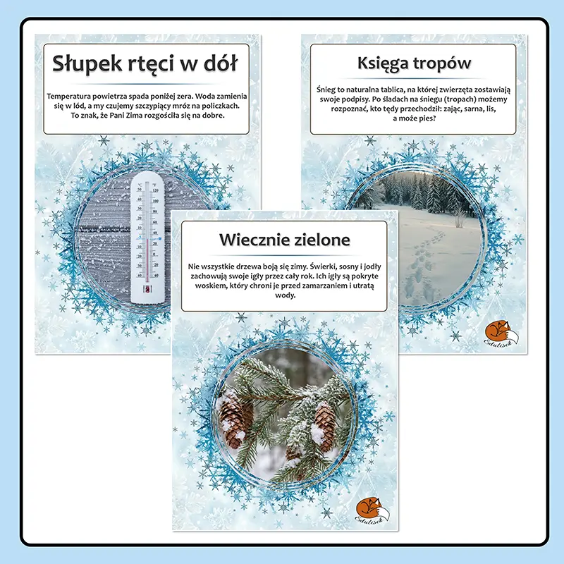 2. Gazetka “Oznaki Zimy” (13 Kart Dydaktycznych A4):
